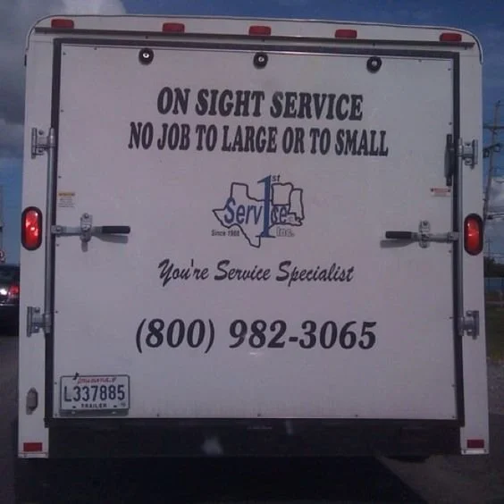 9. ‘On sight service. No job to large or to small. You’re service specialist.’